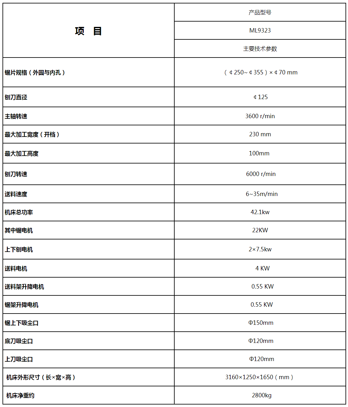 10. 本產(chǎn)品僅適合規(guī)格木料的加工,不適合兩邊有邊皮的木料加工